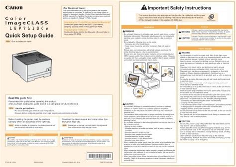 Webpage (html) canon color imageclass lbp7110cw quick setup guide filename: 0300954901 download i have read and understood the disclaimer. This manual comes under the category printers and has been rated by 2 people with an average of a.