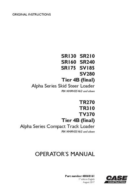 Web Case Sr130 / Sr210 / Sr160 / Sr240 / Sr175 / Sv185 / Sv280 Tier 4B (Final) And Stage Iv Alpha Series Skid Steer Loader, Tr270 / Tr310 / Tv370 Tier 4B (Final) And Stage Iv.