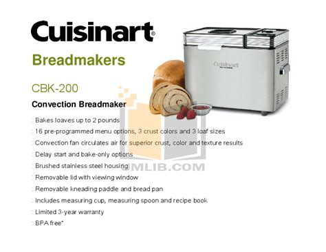 PDF manual for Cuisinart Bread Maker CBK200 from www.umlib.com