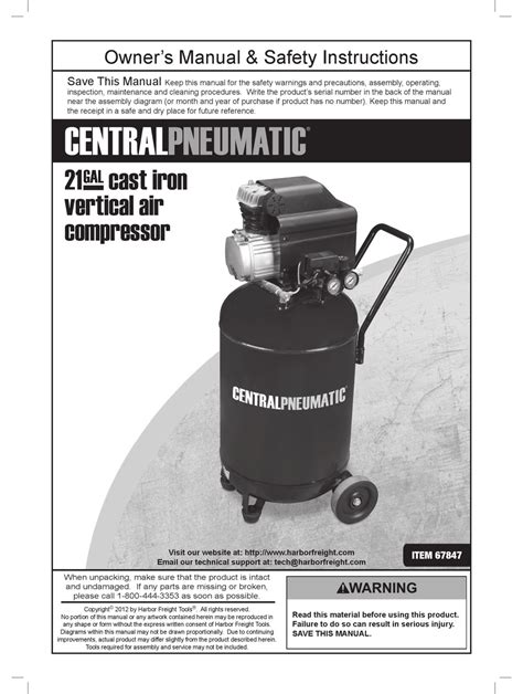 Web user manual central pneumatic air compressor 93217: Web save this manual you will need the manual for the safety warnings and cautions, assembly instructions, operating procedures, maintenance procedures, trouble shooting, parts list,. Web view online or download pdf (1 mb) central pneumatic 63635, item 63635 owner's manual • 63635, item 63635 air compressors pdf manual download and more.