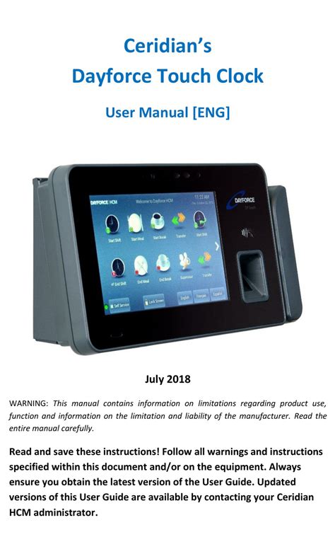 Web 1 Ceridian S Dayforce Touch Clock User Manual [Eng] August 2020 Warning: