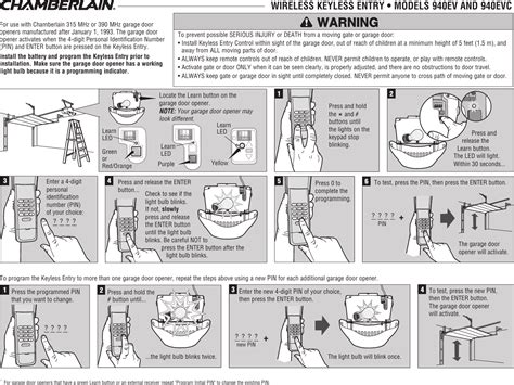 The garage door opener activates. We have 3chamberlain 940ev manuals. For use with chamberlain 315 mhz or 390 mhz garage door openers manufactured after january 1, 1993.