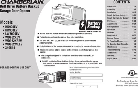 We have 1 chamberlain hd930evp manual available for free pdf download: Web the model hd930ev is still available. The model number label is located on the left side panel of your garage door