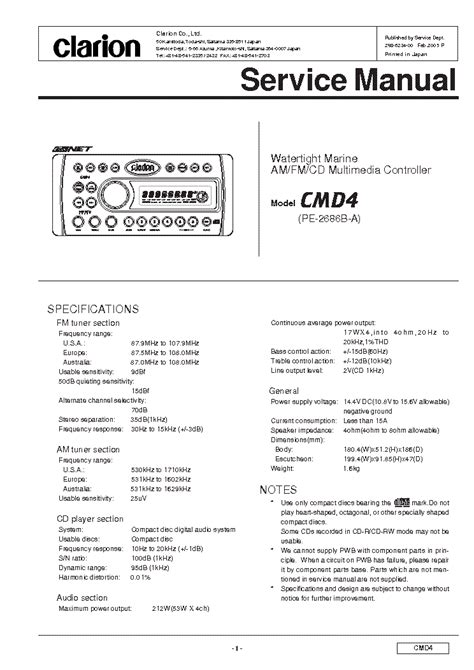 CLARION CMD4 Service Manual download, schematics, eeprom, repair info from elektrotanya.com