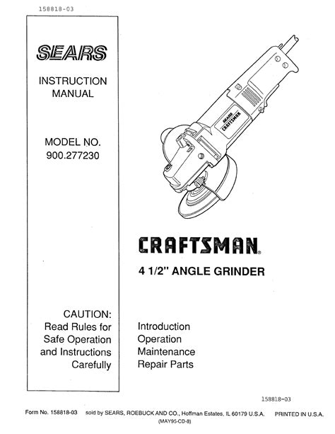 This user manual contains important warranty, safety, and product feature information. Web view and download craftsman 900.277230 nstruction instruction manual online. Page 1owner's manual ® 8 amp angle grinder model no.