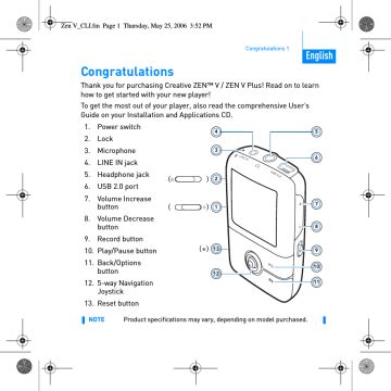 Creative Zen V Plus Manual. You may find documents other than just manuals as we also make available many user. Page 3 congratulations 1 english congratulations thank you for purchasing creative.